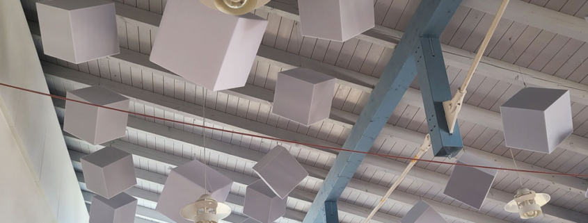 Endlich ist er da – der Lärmschutz im Kindergarten. An Wänden und Decken wurden verschiedene Elemente angebracht, um den Schall zu brechen. Das Ergebnis lässt sich sehen – und hören!