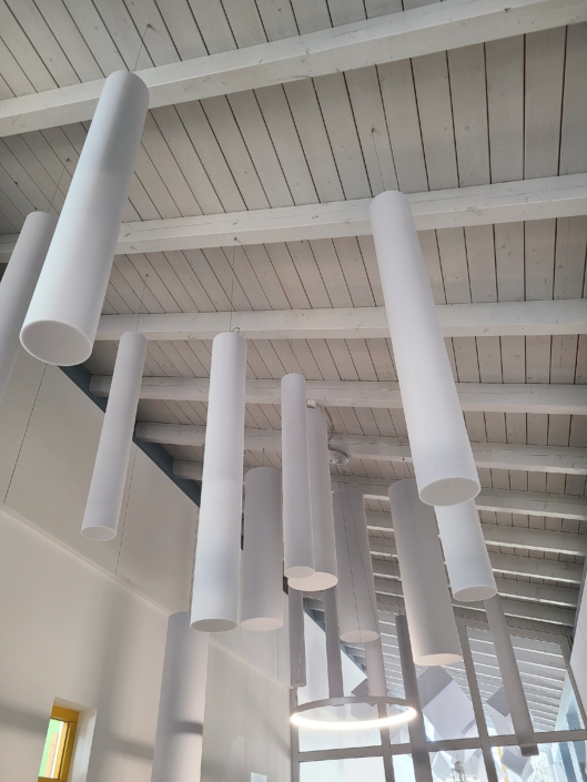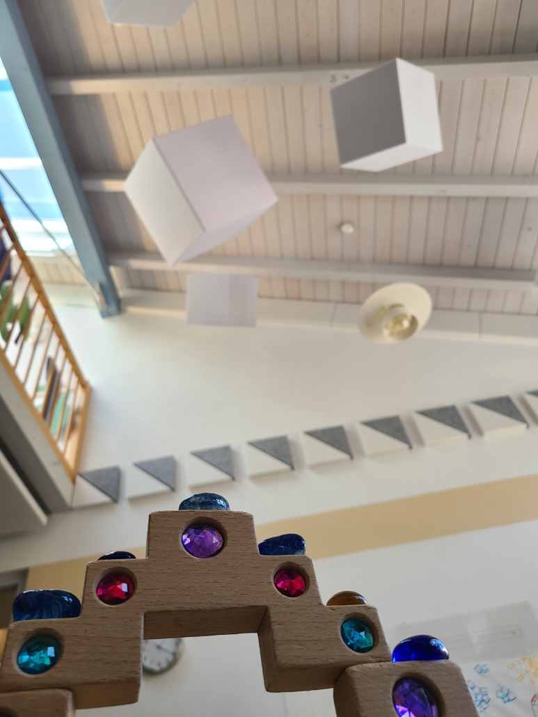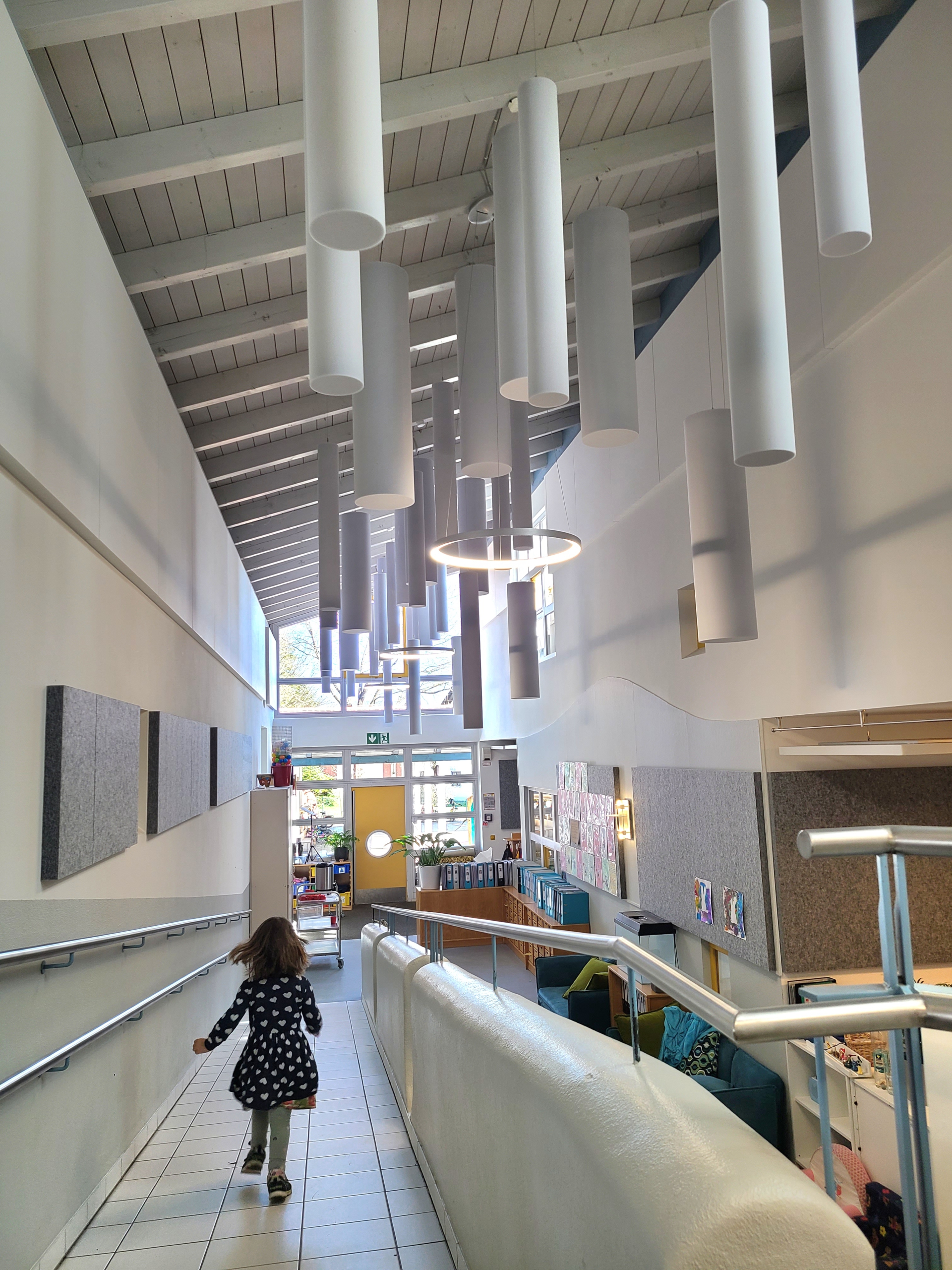 Endlich ist er da – der Lärmschutz im Kindergarten. An Wänden und Decken wurden verschiedene Elemente angebracht, um den Schall zu brechen. Das Ergebnis lässt sich sehen – und hören!